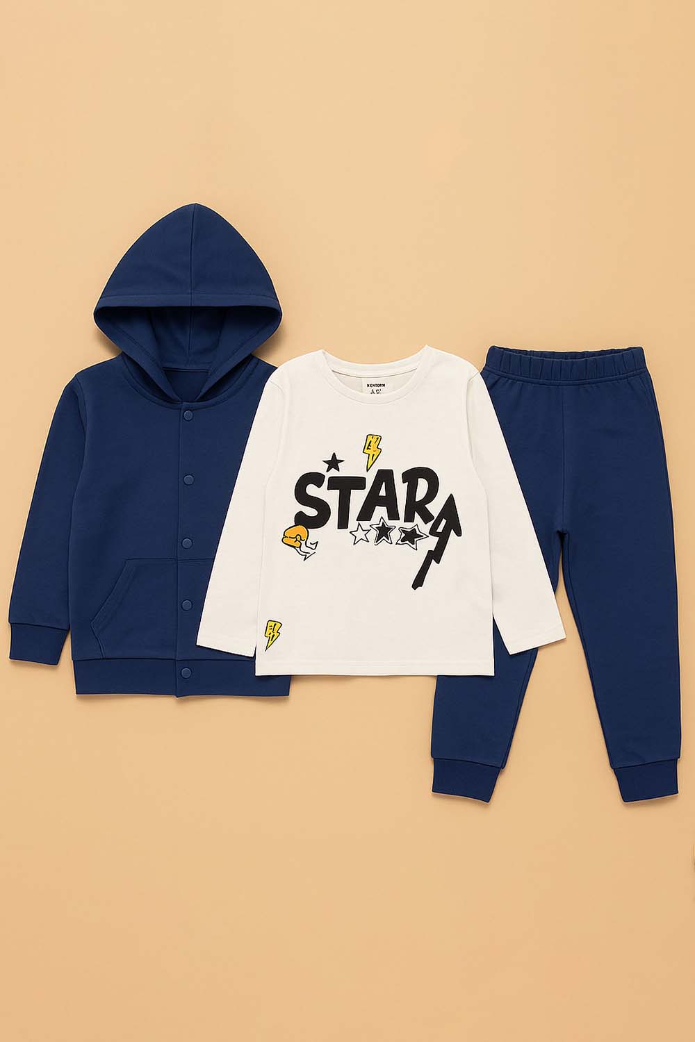 Cool and vibrant boys’ outfit in fresh azure tones, crafted from soft, breathable fabric for all-day comfort. Perfect for outdoor fun, playdates, or casual outings.