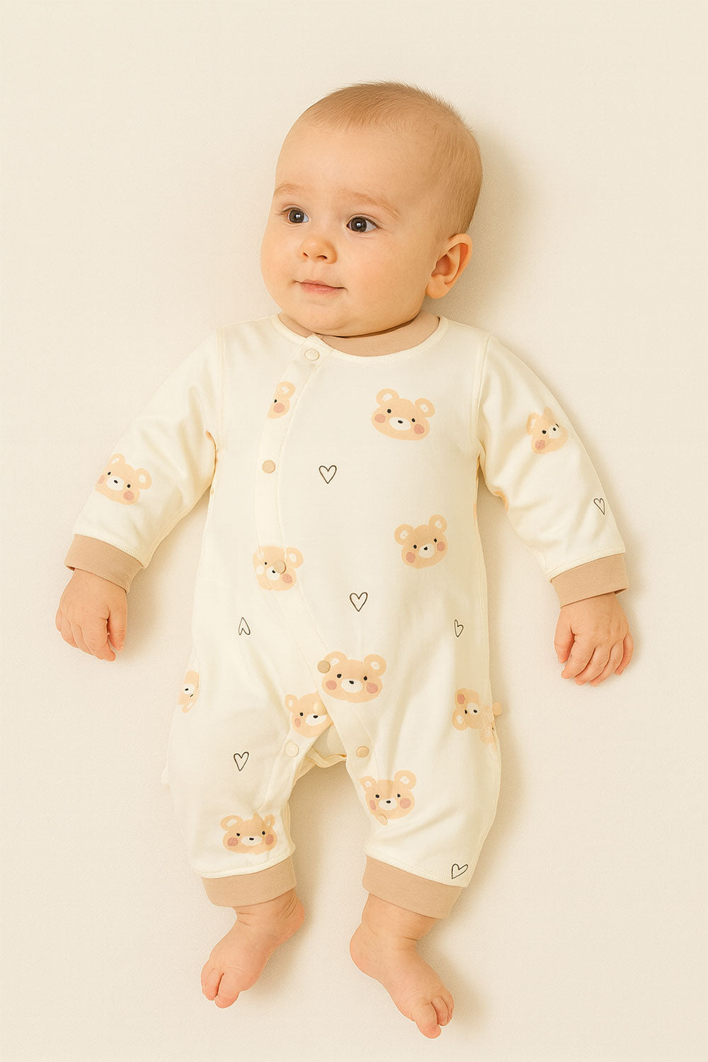 Cute newborn outfit with an adorable bear design, made from soft, breathable fabric for all-day comfort. Perfect for cuddles, playtime, or special occasions.