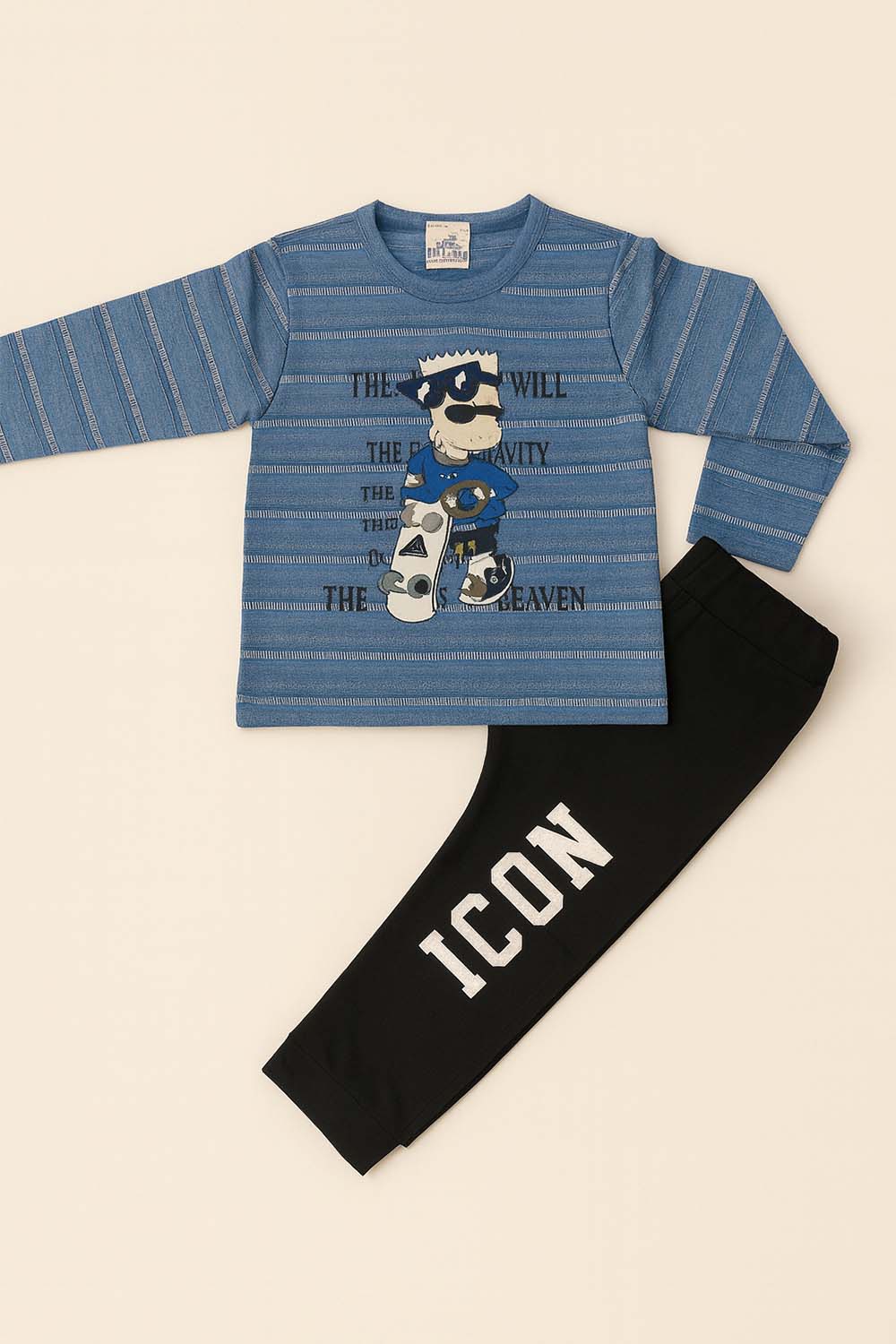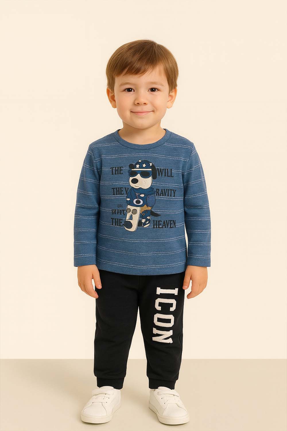 Stylish boys’ outfit in a cool blue horizon shade, made from soft, breathable fabric for all-day comfort. Perfect for casual outings, playdates, or family gatherings.