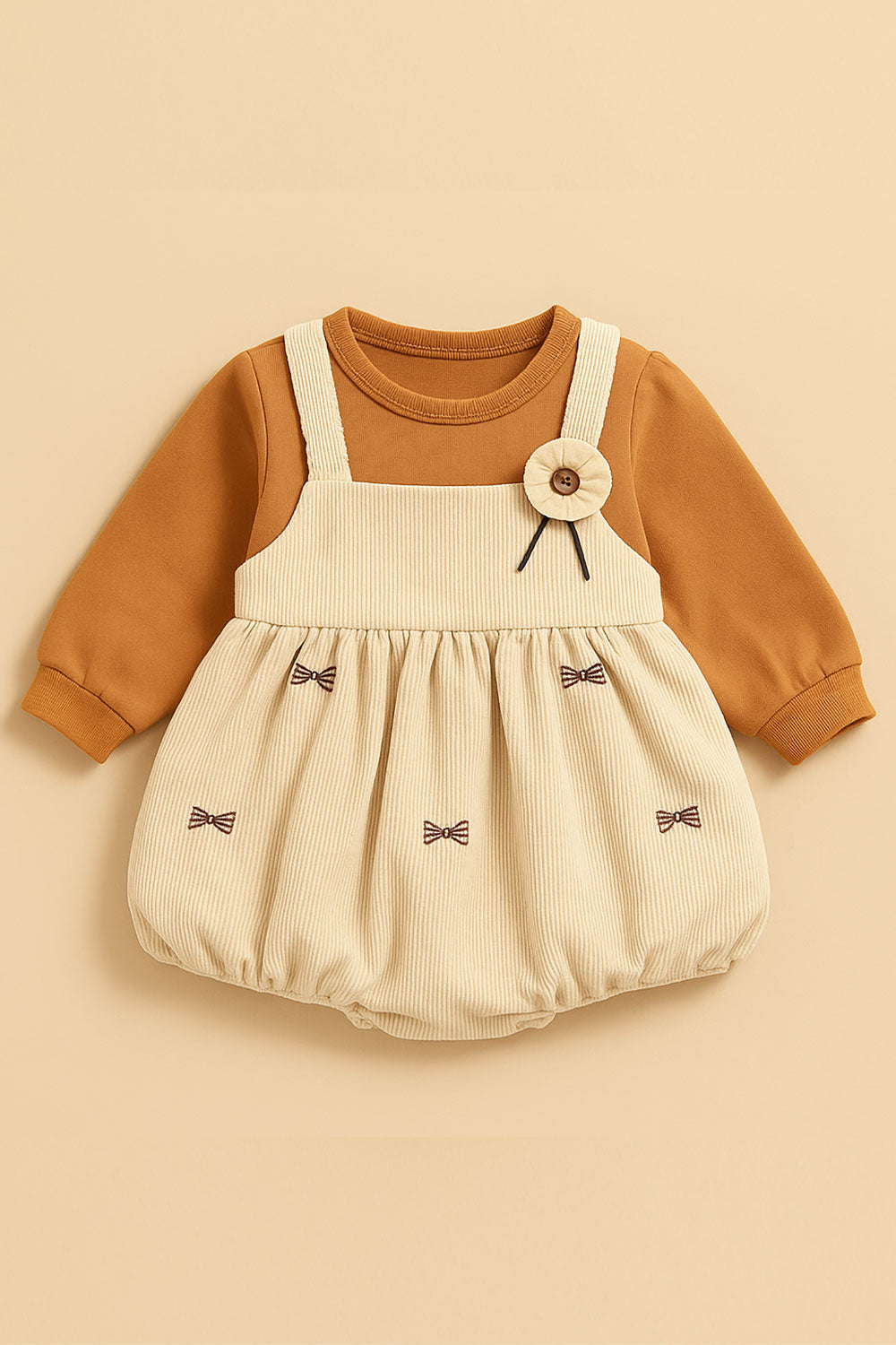 Adorable baby girls’ dress in a warm cocoa shade, made from soft, breathable fabric for all-day comfort. Perfect for cozy outings and special occasions.