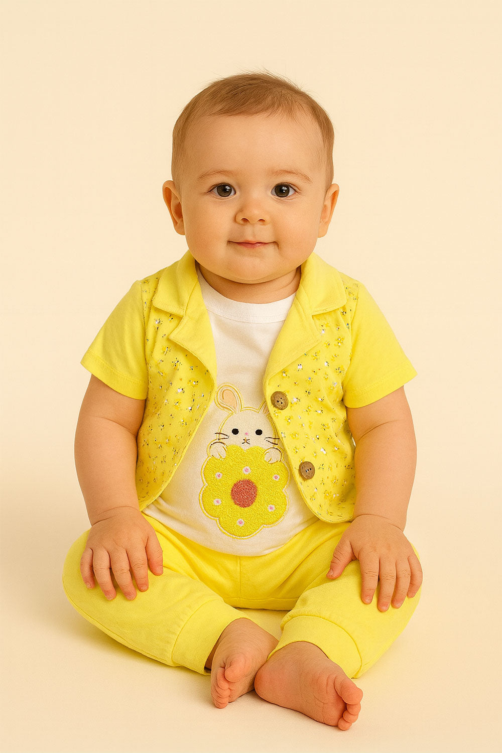 Bright and cheerful newborn outfit in a fresh lemonade yellow, made from soft, breathable fabric for all-day comfort. Perfect for sunny outings or special moments.